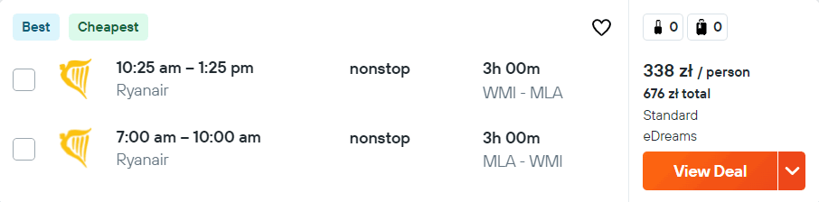 Na Maltę udacie się na przełomie września i października. Podróż rozpoczniecie i zakończycie na warszawskim lotnisku w Modlinie. W obie strony polecicie na pokładach samolotów linii Ryanair z wliczonym małym bagażem podręcznym.