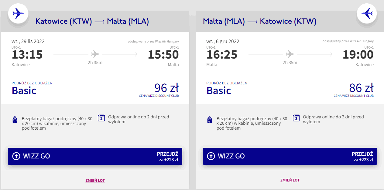 Na urlop udacie się dopiero na przełomie listopada i grudnia, z katowickiego lotniska w Pyrzowicach. W obie strony polecicie na pokładach samolotów linii Wizz Air. Bilety w najniższej cenie dostępne są dla osób z Wizz Discount Club, chętni na loty bez WDC zapłacą nieco więcej.