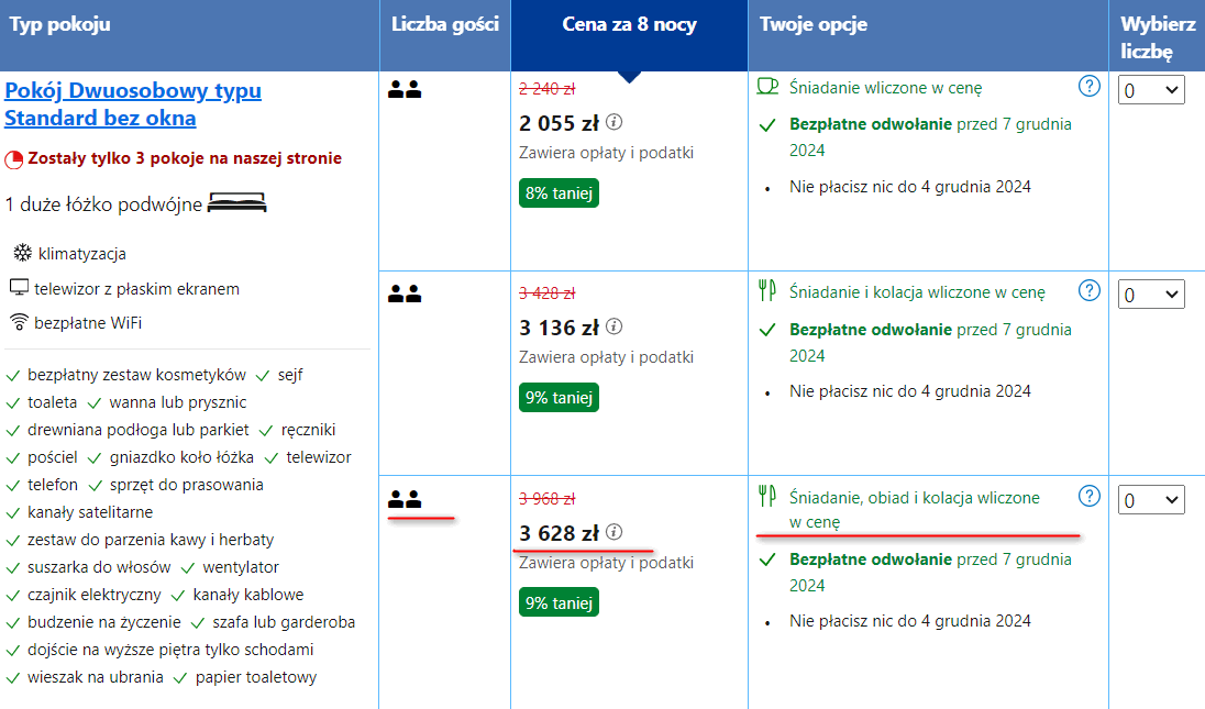 Hotel 3628 PLN/2 osoby/8 nocy