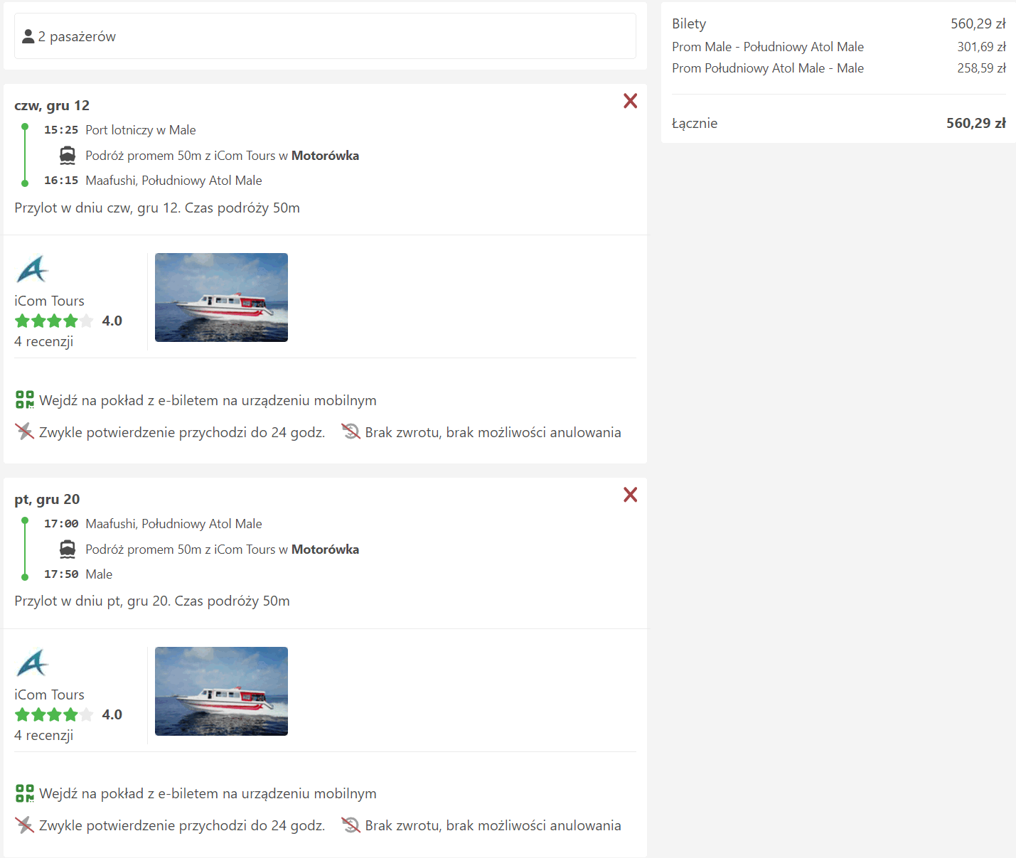 Z międzynarodowego portu lotniczego Male bezpośrednio na wyspę Maafushi dopłyniesz łodzią jednego z lokalnych armatorów. Dostępnych jest wiele rejsów każdego dnia, więc spokojnie uda ci się „złapać” taki, który spasuje z przylotami i odlotami. Za kurs w obie strony dla dwóch osób zapłacisz 560 PLN.