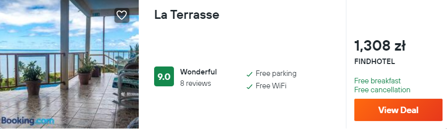 Na Rodrigues proponuje wam zakwaterowanie w apartamencie La Terrasse, który znajduje się tuż przy wybrzeżu. Obiekt oferuje śniadania wliczone w cenę pobytu.