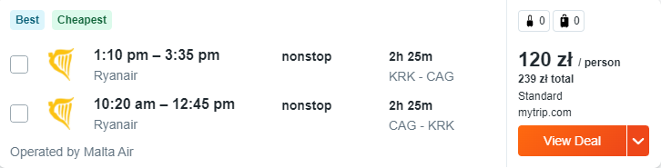 Na Sardynię udacie się w terminie 23–30 listopada. Czekają was loty z lotniska w Krakowie, realizowane na pokładzie samolotów linii lotniczej Ryanair.