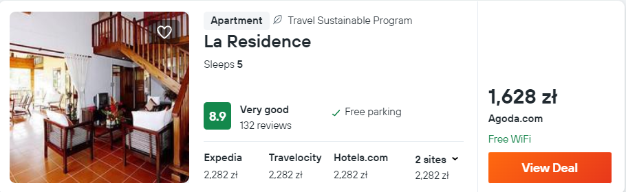 Za loty oraz zakwaterowanie zapłacisz 3437 PLN za osobę, przy 2 podróżnych śpiących w jednym pokoju.