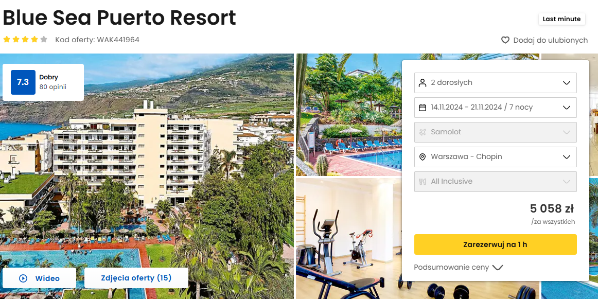 W cenę pakietu wliczone są loty z bagażem rejestrowanym, transfery z lotniska do hotelu, podstawowe ubezpieczenie, opieka rezydenta oraz all inclusive.