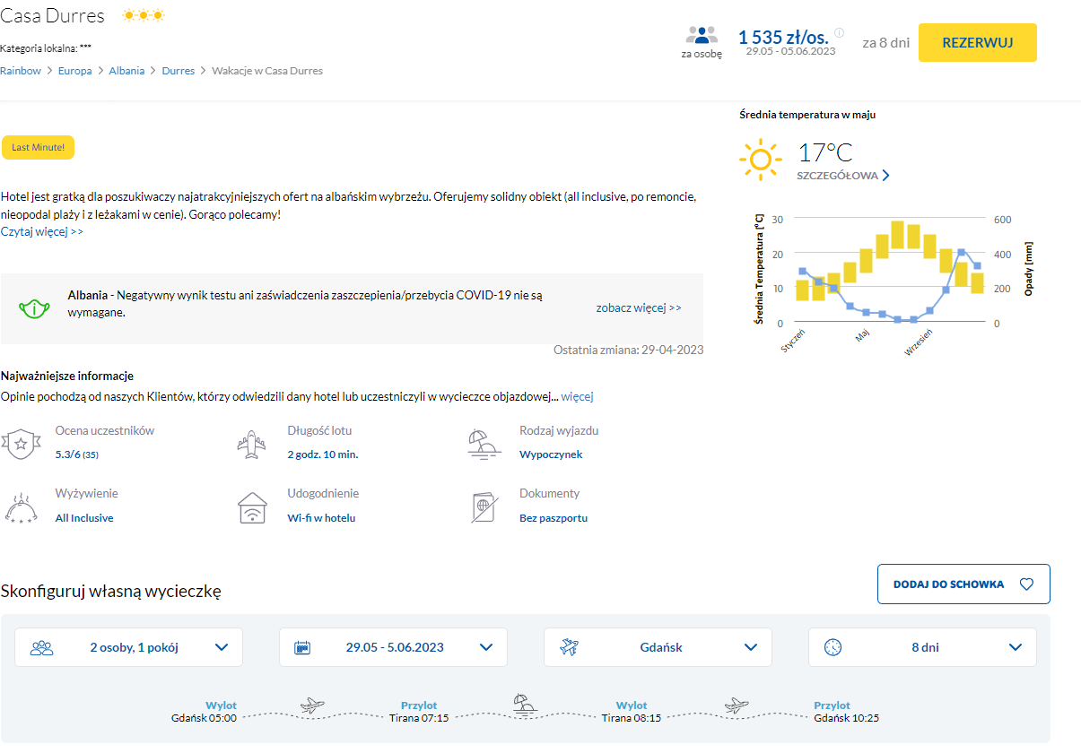 Do Albanii udasz się na w terminie 29 maja – 5 czerwca. Czeka cię bezpośredni lot z 4 wybranych miast do Tirany.