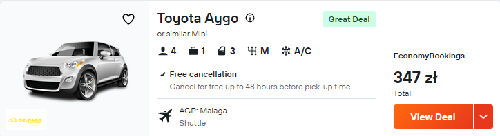 Zachęcam cię do wypożyczenia samochodu po przylocie do Hiszpanii. Mając do własnej dyspozycji auto, łatwo i wygodnie dostaniesz się na Gibraltar oraz do wszystkich ciekawych miejsc Andaluzji.