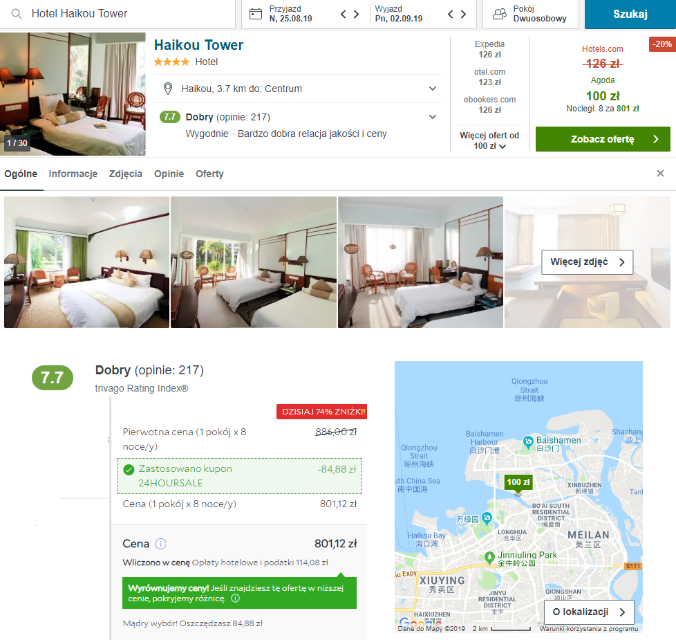To na pewno wyjątkowe miejsce do spędzenia egzotycznego urlopu w Azji. Znajdziecie tam najpiękniejsze chińskie plaże, a sama wyspa Hajnan nazywana jest nawet chińskimi Hawajami. Dotrzecie tam w bardzo dobrej cenie. Loty odbędziecie z 2 przesiadkami, a w cenie macie wliczony bagaż rejestrowany. Jeżeli chodzi o klimat tego miejsca, to pamiętajcie, panować będzie pora deszczowa, co oznacza, że mogą wystąpić okresowe, silne opady, ale temperatura zdecydowanie to rekompensuje. Do tego sierpień to okres, w którym Hajnan potrafią nawiedzić tajfuny. Ale szansa na to jest dużo mniejsza niż np. w lipcu.