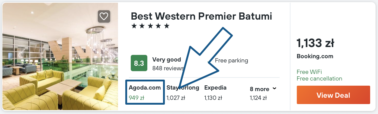 W Batumi polecam noclegi w 5* Best Western Premier. Aby uzyskać najniższą cenę, wybierzcie pośrednika Agoda.com.