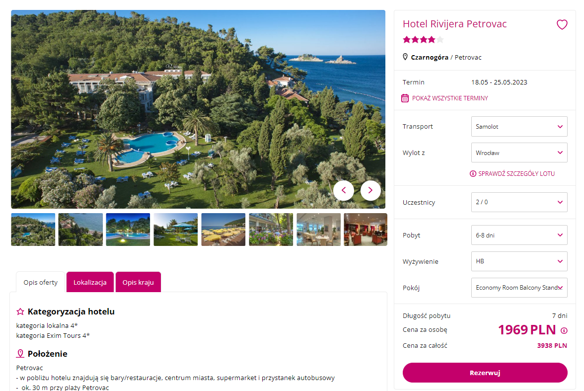 Wyjazd do Czarnogóry odbędzie się w dniach 18 – 25 maja. Czeka cię bezpośredni lot z Wrocławia do Podgoricy. W cenę wliczono również podstawowe ubezpieczenie i bagaż podręczny.