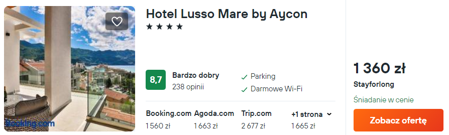 W Czarnogórze rekomenduję pobyt w 4* hotelu Lusso Mare. Obiekt zlokalizowany jest w pobliżu plaży. Do twojej dyspozycji zostanie oddany przytulny pokój z prywatną łazienką oraz taras.