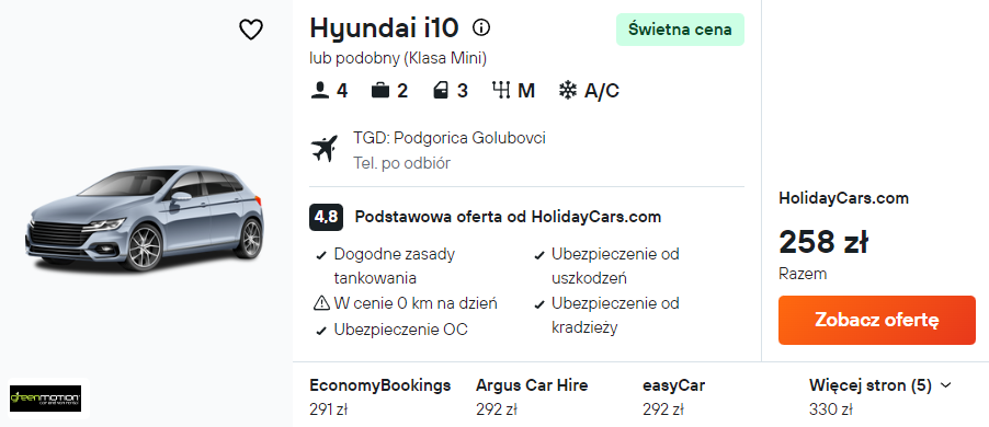 Aby szybko dojechać do miejsca zakwaterowania i zobaczyć okoliczne atrakcje, wypożycz samochód już na lotnisku w Podgoricy.