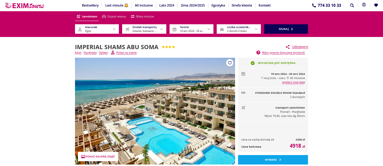 Do Egiptu udasz się w terminie 19-26 września. Na wypoczynek polecisz z wliczonym bagażem rejestrowanym z Poznania. W cenie otrzymasz all inclusive, transfery lotniskowe i podstawowe ubezpieczenie zdrowotne.