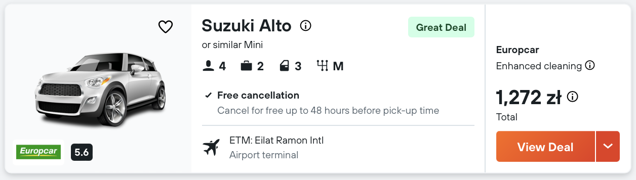 Chcesz zwiedzać niezależnie? Wypożycz samochód tuż po wylądowaniu w Izraelu.