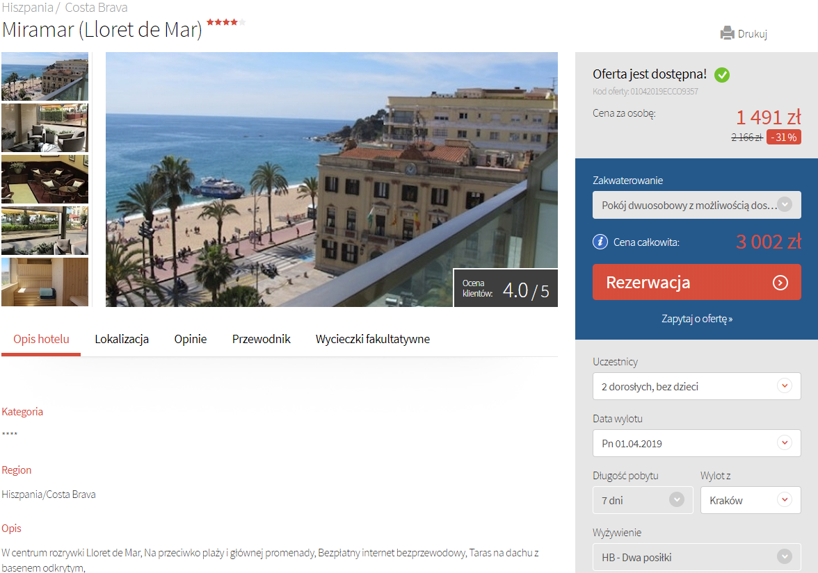 Urlop w Lloret de Mar w 4* hotelu przy plaży z HB za 1491 PLN. Wylot z Krakowa