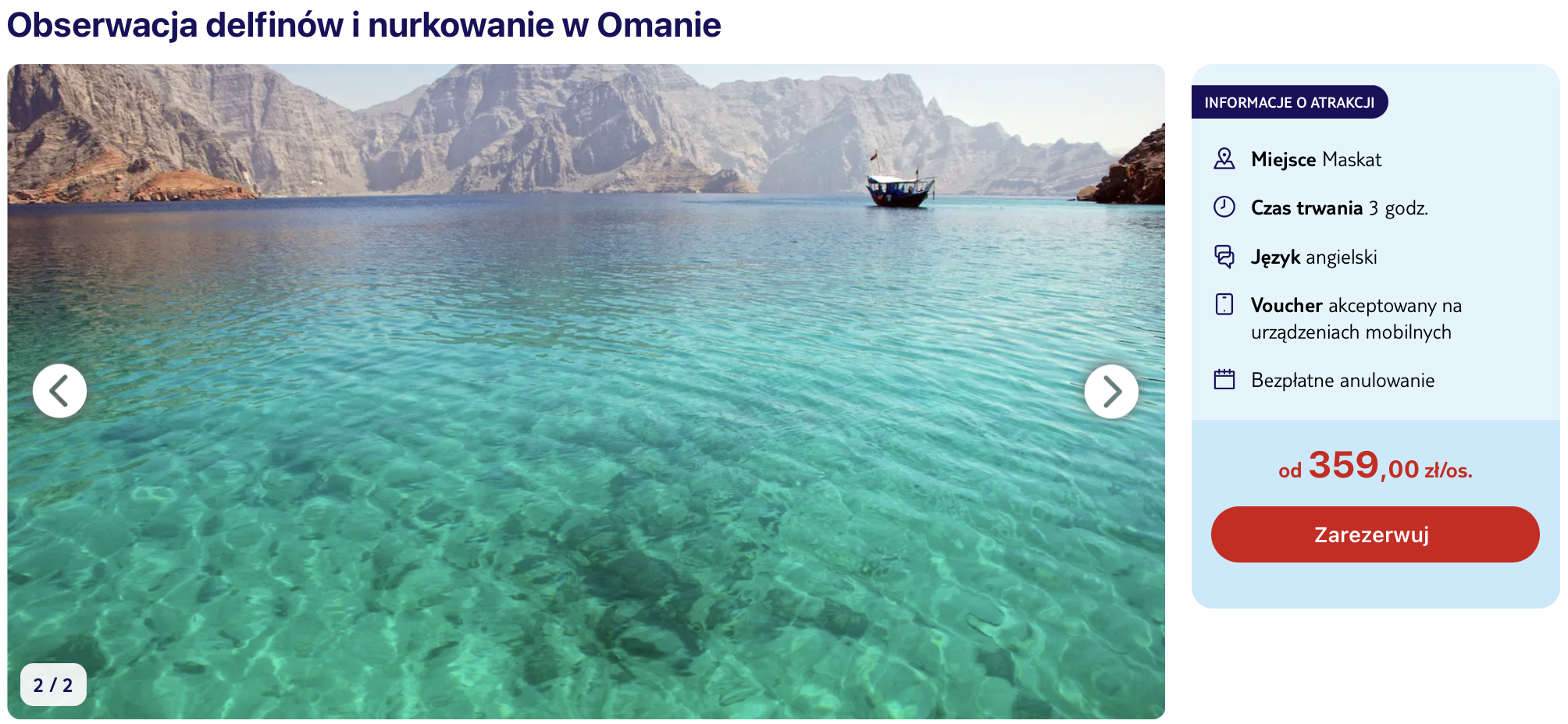 Odkryj olśniewający podwodny świat Omanu. Rozpocznij przygodę z obserwowaniem delfinów i zakończ dzień nurkując w przepięknej zatoce.