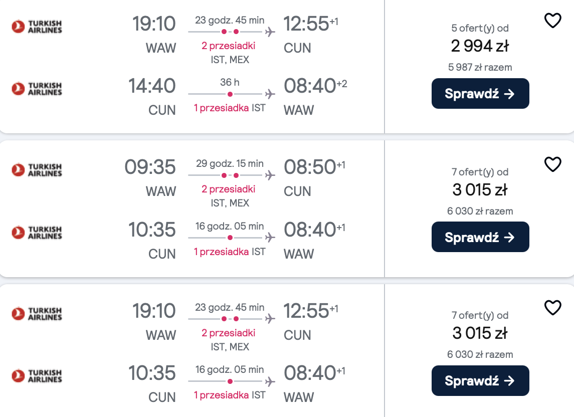 Do Meksyku wybierzesz się w terminie 10(11) – 20 marca. Do Cancun polecisz z Warszawy linią Turkish Airlines, z przesiadkami w Stambule i przystankiem technicznym w mieście Meksyk (bez opuszczania samolotu).