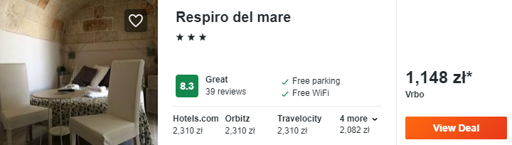 Na miejscu zakwaterowani będziecie w miejscowości Polignano a Mare w 3* hotelu Respiro del mare, który znajduje się w samym centrum miasta. Od większości atrakcji dzielić was będzie kilka minut spokojnego spaceru.