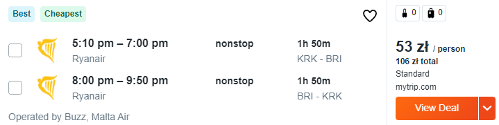 Do Bari udacie się 22 kwietnia z lotniska w Krakowie, a do kraju wrócicie 26 kwietnia. W obie strony polecicie na pokładach samolotów linii Ryanair. Bez dodatkowych kosztów zabrać ze sobą będziecie mogli mały bagaż podręczny.