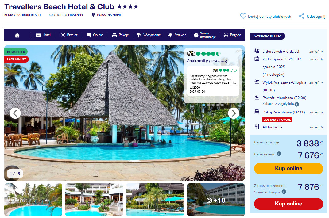 Urlop w słonecznej Kenii 🌴🏄♂️ Tydzień w 4* hotelu z all inclusive przy plaży za 3838 PLN ☀️