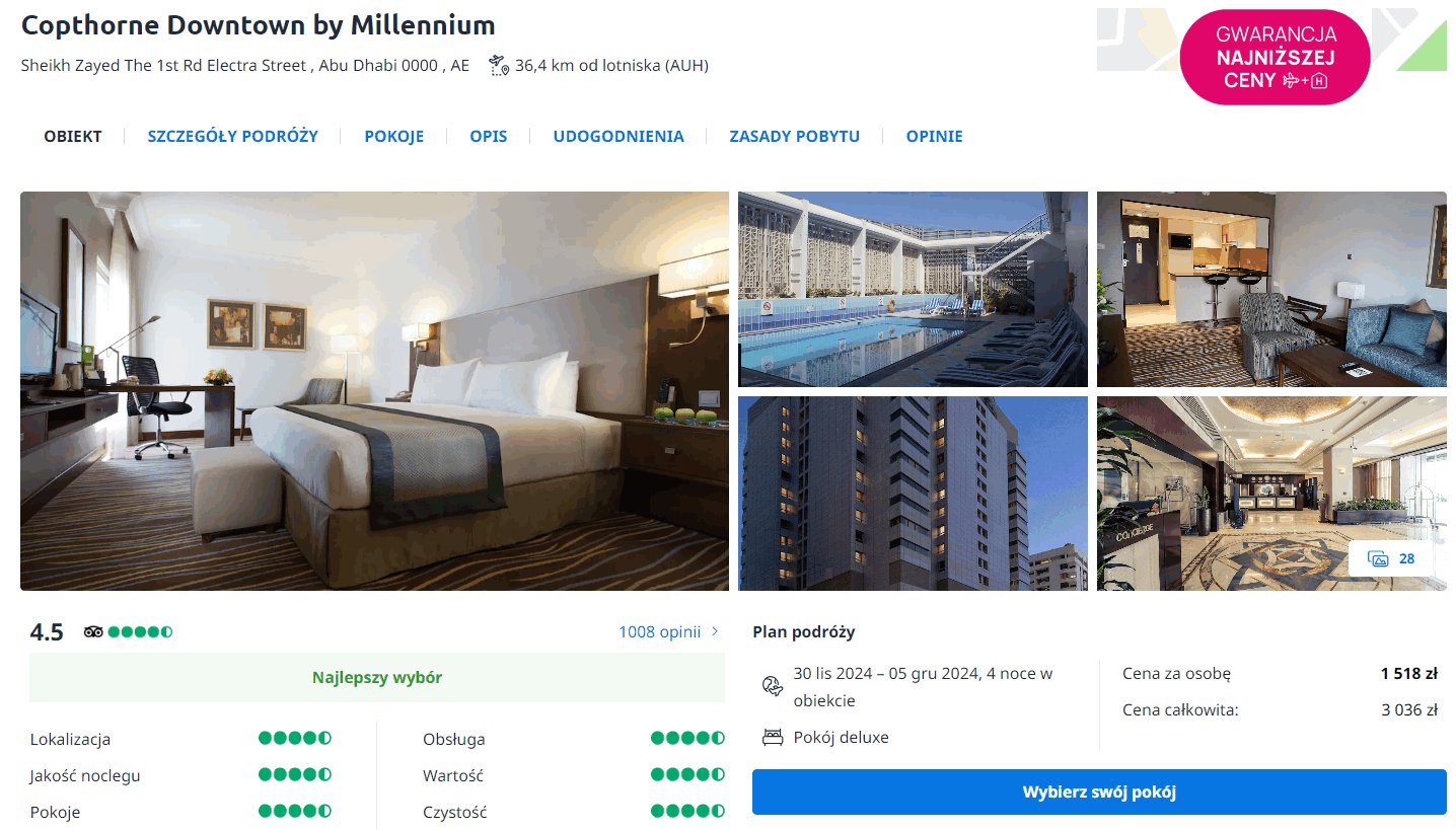 W stolicy Zjednoczonych Emiratów Arabskich zatrzymasz się w hotelu Copthorne Downtown by Millennium, z odkrytym basenem na dachu oraz centrum fitness. Na terenie całego obiektu będziesz miał zapewniony dostęp do sieci WiFi. Każdy pokój wyposażony jest w klimatyzację, telewizor LCD, mini bar oraz czajnik elektryczny. Goście codziennie mają zapewnioną butelkę wodny mineralnej!