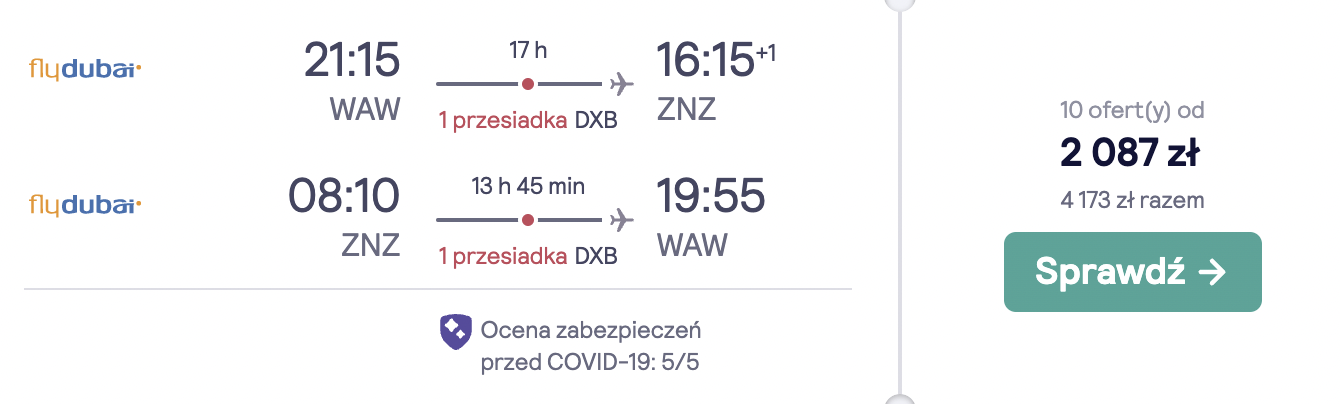 Do Afryki wybierzecie się w terminie 29(30) kwietnia – 7 maja. Wasza podróż rozpocznie się na lotnisku im. Fryderyka Chopina w Warszawie, a loty będą realizowane na pokładach samolotów linii Flydubai. Po drodze czekają was bezpieczne przesiadki w Dubaju.