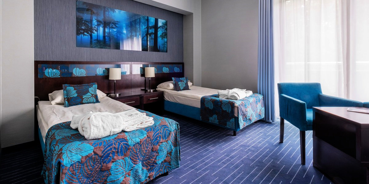 W cenie otrzymasz noclegi w komfortowo wyposażonym pokoju oraz śniadania w formie bufetu. W pakiecie dostaniesz również nielimitowany dostęp do strefy AQUA (basen, jacuzzi, bicze wodne, sauna sucha, łaźnia parowa, grota solna).