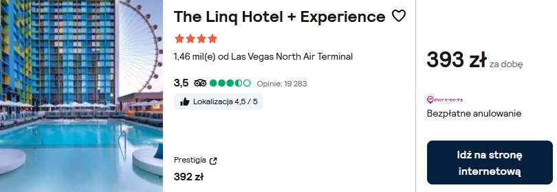 Natomiast w Las Vegas rekomenduję 4* hotel The Linq. Na miejscu skorzystasz z basenu zewnętrznego i tarasu słonecznego.