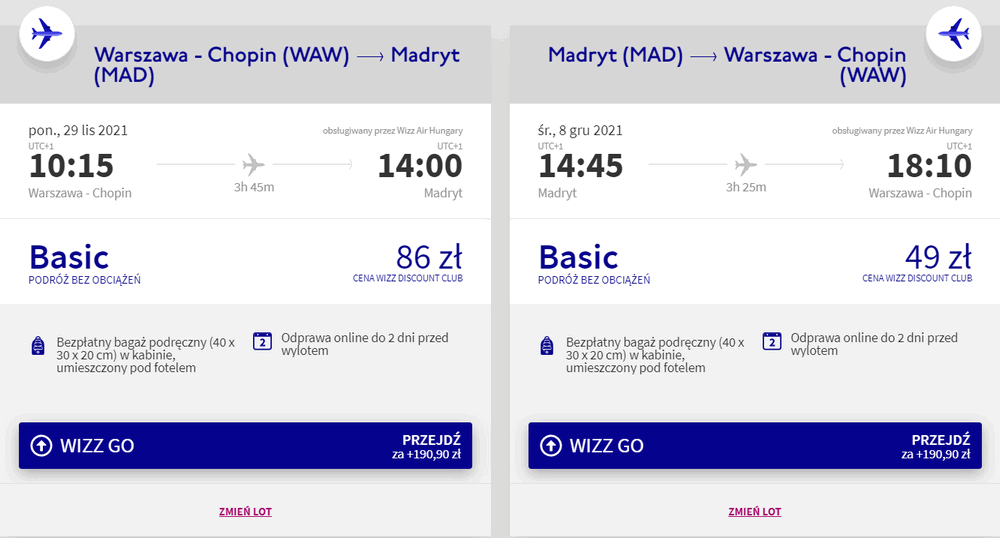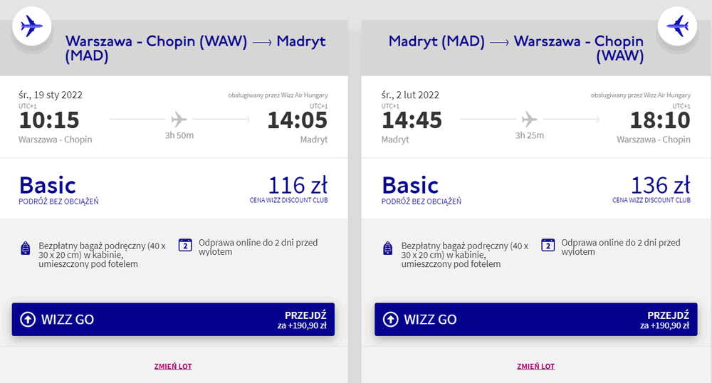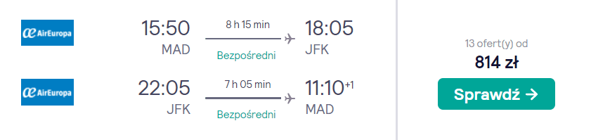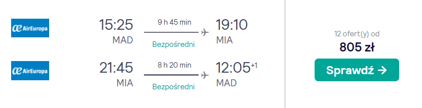 Najmniej kosztować was będą przeloty ze stolicy Hiszpanii do Miami oraz Nowego Jorku, nieco więcej zapłacicie za podróż z Paryża do Chicago. Natomiast dokładając do tych okazji doloty z warszawskiego lotniska im. Chopina, w dalszym ciągu oferta prezentować się będzie atrakcyjnie. Jak wygląda trasa na dwóch oddzielnych biletach, możecie zobaczyć na tym przykładzie.