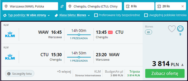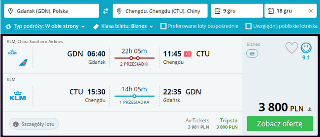 W klasie biznes do Chin. Loty do Chengdu z Gdańska, Krakowa i Warszawy od 3800 PLN