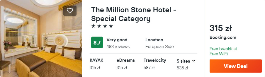 W Stambule proponuję ci noclegi z codziennymi śniadaniami w 4* hotelu The Million Stone, który znajduje się w centrum zabytkowej dzielnicy Sultanahme. W cenie zapewniony będziesz mieć dostęp do sieci WiFi oraz sauny.