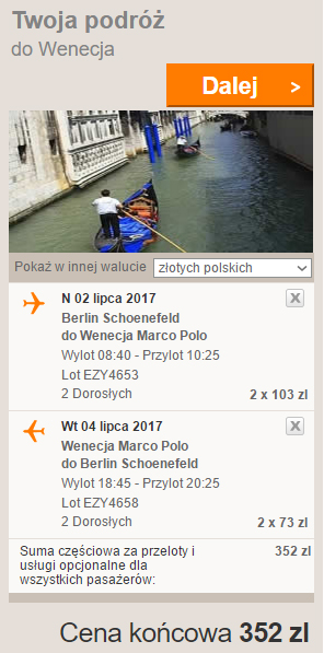 - Przelot z Berlina do Wenecji (2 – 4 lipca) za 352 PLN/2 os. (176 PLN/os.)