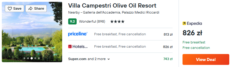 Marzy ci się pobyt w niezwykłym miejscu? Zarezerwuj noclegi we wspaniałym 4* Villa Campestri Olive Oil Resort. W cenę wliczone są codzienne śniadania.