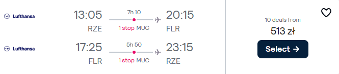 Do Toskanii udasz się w terminie 12 – 16 lipca (sobota – środa). Do Florencji polecisz bezpośrednio z Lufthansą, a po drodze przesiądziesz się we Frankfurcie oraz Monachium.