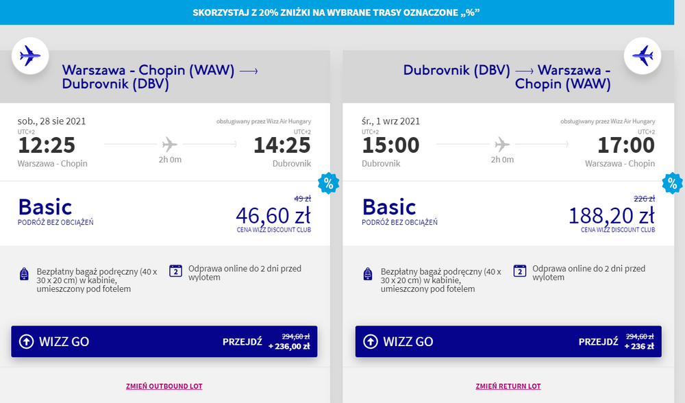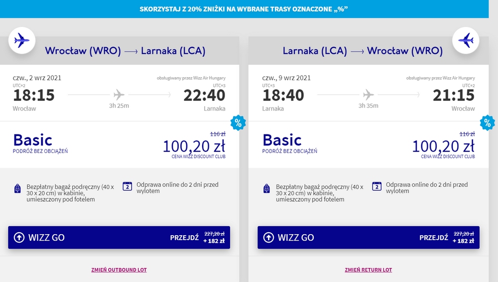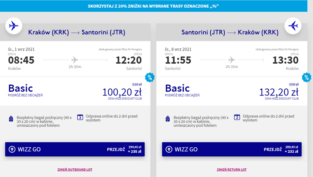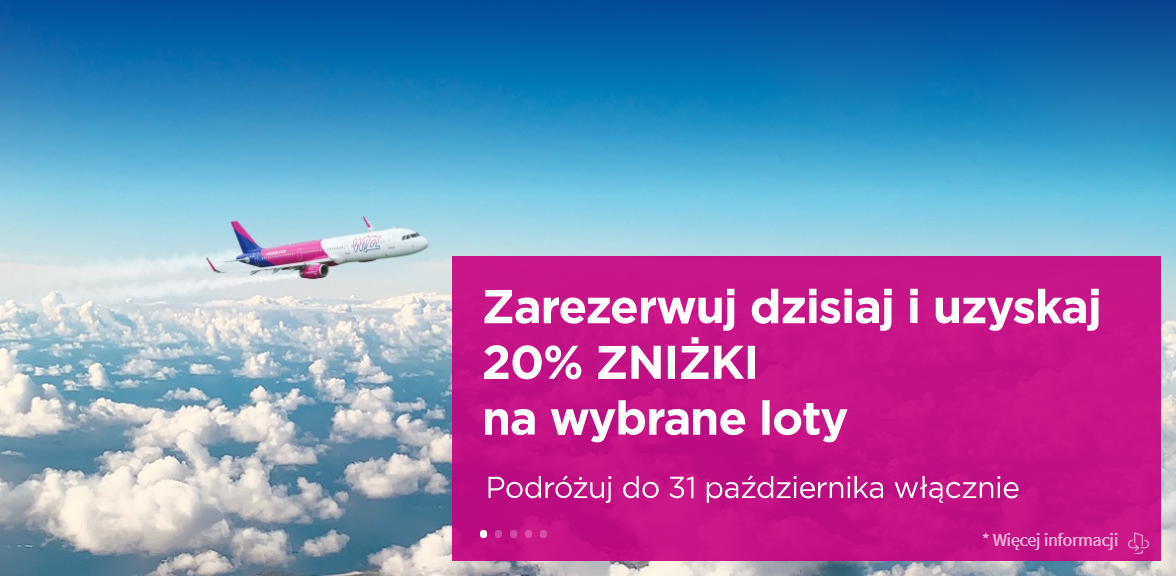 Promocyjne ceny biletów (objęte 20-procentowym rabatem) dostępne są dziś, na wybrane kierunki z siarki węgierskiej linii lotniczej Wizz Air. W obniżonej cenie możecie rezerwować podróże, które mogą się odbyć aż do 31 października.