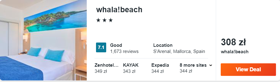 Na największej wyspie Balearów proponuję wam zakwaterowanie w 3* hotelu whala!beach, który znajduje się w miejscowości Arenal, w odległości 200 metrów od tamtejszej plaży. Wszystkie pokoje zostały nowocześnie urządzone i wyposażone w klimatyzację, telewizor LCD oraz zestaw do parzenia kawy i herbaty.