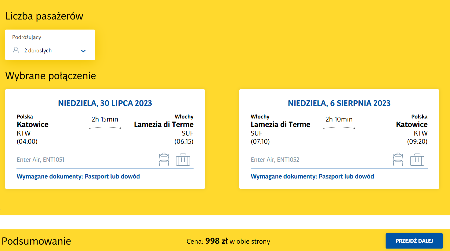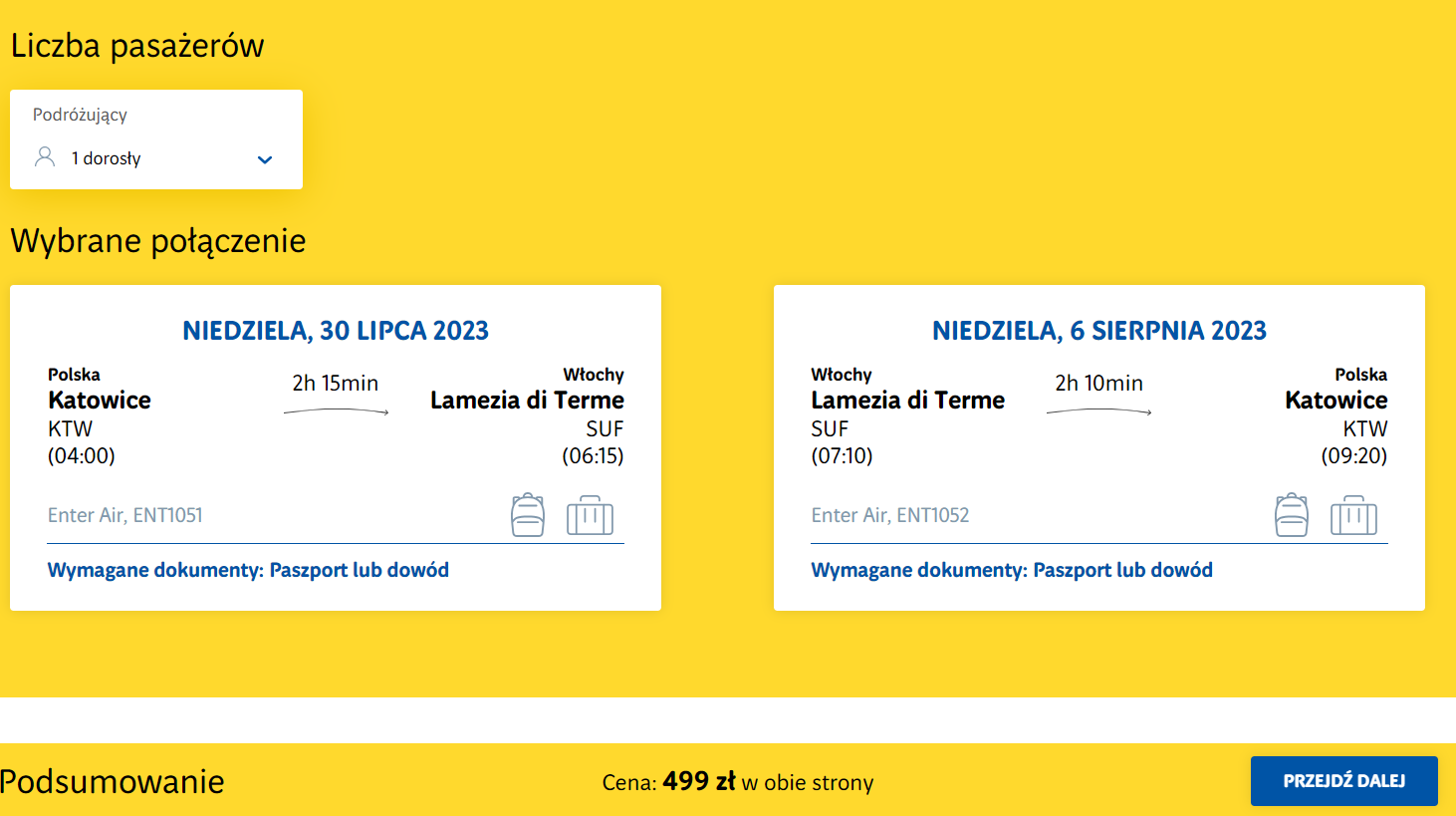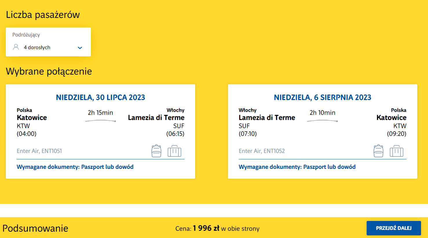 Do Włoch podróżować będziesz z katowickiego lotniska im. Wojciecha Korfantego w terminie 30 lipca-6 sierpnia. W obie strony polecisz bezpośrednio na pokładach samolotów linii Enter Air.
