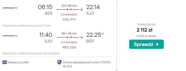 Na wycieczkę do Kostaryki wybierzecie się na przełomie wakacyjnych miesięcy, w terminie 29 lipca – 7(8) sierpnia. Czeka was podróż z lotniska w Berlinie, realizowana na pokładzie samolotów linii lotniczej Air France, Copa oraz Air Mexico z bezpiecznymi, gwarantowanymi przesiadkami w Paryżu, Panamie oraz mieście Meksyk.