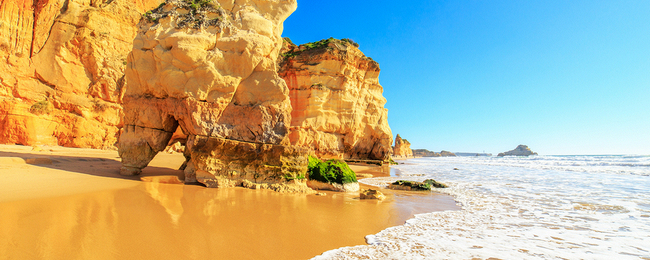 Algarve jest najbardziej wysuniętym na południe obszarem Starego Kontynentu, a co za tym idzie, jednym z najbardziej słonecznych obszarów Europy. Ze swoimi skalistymi wybrzeżami i długimi, piaszczystymi plażami Oceanu Atlantyckiego stanowi raj dla miłośników błogiego wypoczynku. Najpopularniejsza wśród turystów jest słynna, ponad 2-kilometrowa Praia da Rocha, urozmaicona łukami skalnymi. Ze względu na swoje położenie, region ten może poszczycić się również znakomitymi warunkami do uprawiania sportów wodnych. Będąc w Portugalii nie zapomnijcie oczywiście spróbować tradycyjnej kuchni, słynącej z najświeższych ryb i owoców morza.