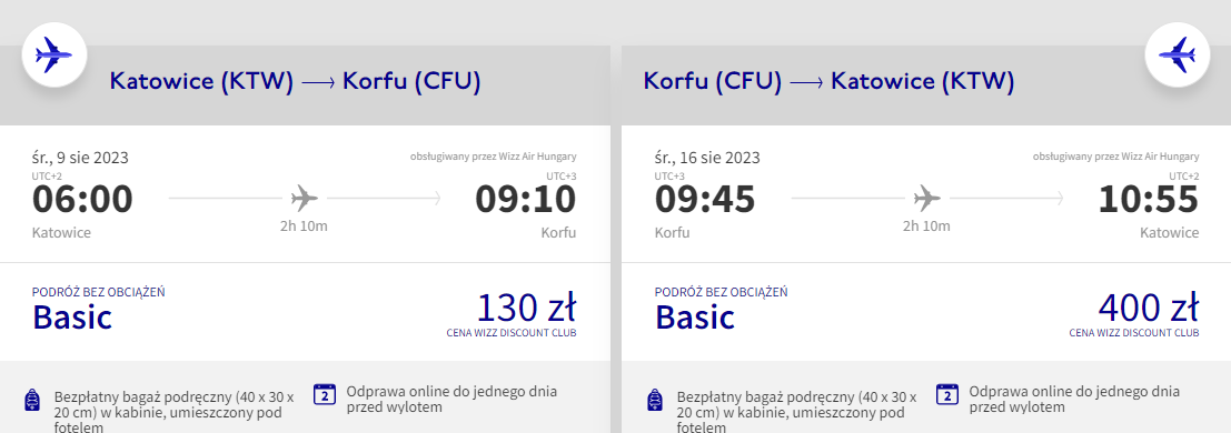 Na wycieczkę udasz się w wakacyjnym szczycie sezonu, w terminie 9 – 16 sierpnia. Czeka cię bezpośrednia podróż z Katowic na Korfu, realizowana na pokładzie samolotu linii lotniczej Wizz Air. Bilety w najniższej cenie zakupią członkowie Wizz Discount Club – sprawdź, jakie korzyści płyną z dołączenia do klubu zniżkowego.