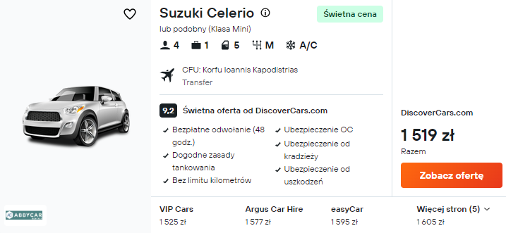 Wypożyczony samochód to konieczność na wyspie. Dzięki niemu szybko dostaniesz się do hotelu, a następnie bez przeszkód dotrzesz we wszystkie interesujące zakątki Korfu.