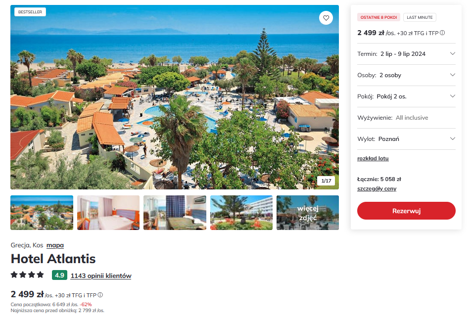 Do Grecji udasz się w terminie 2-9 lipca. Czeka cię bezpośredni lot z Poznania na wyspę Kos, realizowany linią Ryanair Sun.