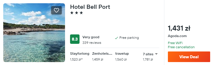 Wybrałem zakwaterowanie w bardzo dobrze ocenianym hotelu Bell Port. Będzie to świetne miejsce na relaks oraz korzystna baza wypadowa w trakcie urlopu.