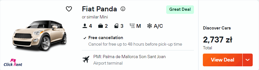Macie w planach także coś zobaczyć? W takim razie zdecydujcie się wynająć samochód zaraz po przylocie na Majorkę. Mając do swojej dyspozycji auto, dojedzcie szybko i wygodnie w różne rejony wyspy