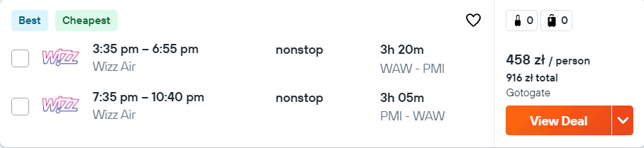 Do Hiszpanii udacie się na przełomie lipca i sierpnia z warszawskiego lotniska im. Chopina. W obie strony polecicie bezpośrednio na pokładach samolotów linii Wizz Air z wliczonym małym bagażem podręcznym. Bilety w najniższej cenie dostępne są dla wszystkich, do ich zakupu nie są potrzebne żadne kluby zniżkowe.