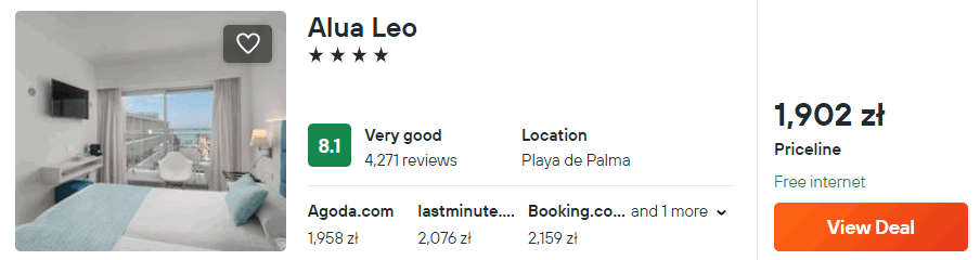 Na wyspie zatrzymasz się w 4* hotelu Alua Leo, który znajduje się nieopodal plaży w miejscowości Can Pastilla. Z lotniska w okolice miejsca noclegowego dojedziesz autobusem lub wypożyczonym samochodem.