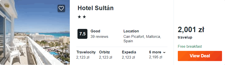 Na Majorce rekomenduję wam noclegi z codziennymi śniadaniami w hotelu Sultán, który od plaży Muro oddalony jest o 100 metrów. Wszystkie pokoje są klimatyzowane i wyposażone w telewizor oraz lodówkę. W każdym jest łazienka z wanną i prysznicem. Na terenie obiektu znajduje się odkryty basen, a we wszystkich pomieszczeniach zapewniony będziecie mieli dostęp do sieci WiFi.