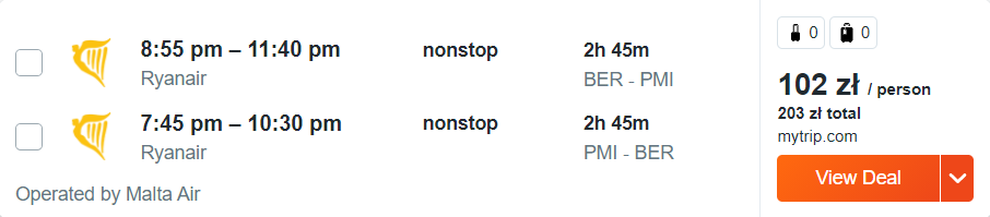 Na urlop wybierzecie się już w następnym tygodniu, w terminie 6 – 13 sierpnia. Podróż rozpoczniecie i zakończycie na lotnisku Berlin Brandenburg, a na Majorkę udacie się na pokładzie samolotu linii Ryanair. Bez dodatkowych kosztów zabierzecie ze sobą bagaż podręczny, dlatego przeczytajcie nasz poradnik, jak się spakować.