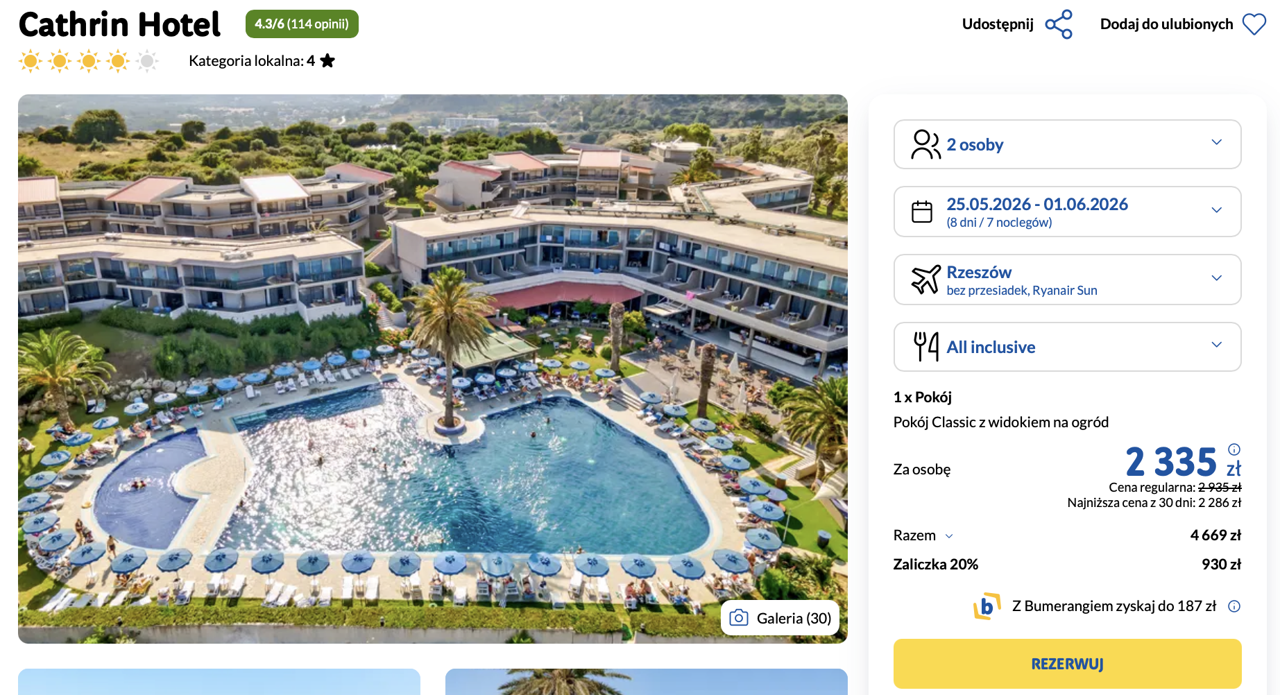 Na Rodos polecisz z jednego z pięciu miast w Polsce: Rzeszowa, Wrocławia, Łodzi, Warszawy lub Katowic w terminie 25 maja – 1 czerwca. Loty realizowane są liniami Ryanair Sun, a w cenie masz bagaż rejestrowany do 20 kg oraz podręczny do 5 kg.