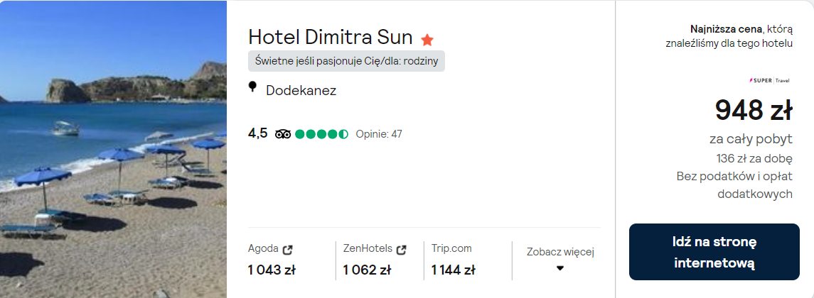 Hotel 948 PLN/2 osoby/7 nocy