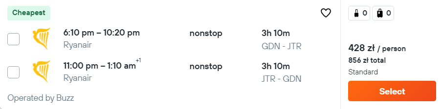 Do Grecji udacie się w terminie od 24 czerwca do 1 lipca. Czeka was bezpośredni lot z Gdańska na Santoryn, realizowany na pokładzie samolotów linii lotniczej Ryanair z wliczonym bagażem podręcznym.